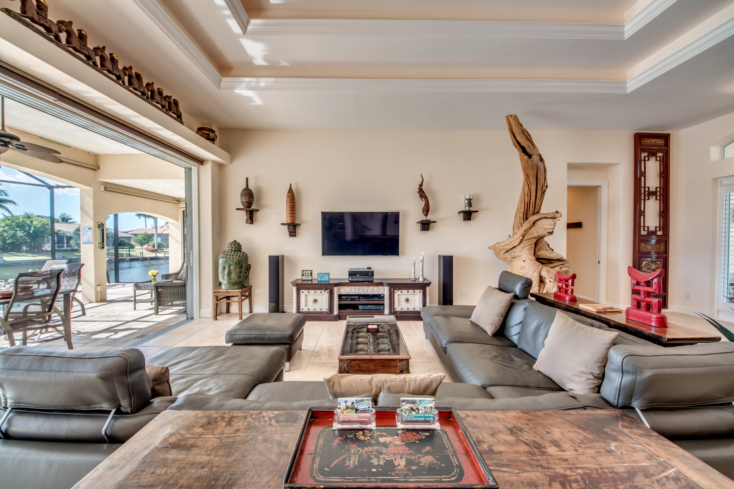 Mit unserem luxuriös gestalteten Ferienhaus in Cape Coral haben wir uns einen ganz besonderen Traum verwirklicht: Zwei geschmackvoll eingerichtete Etagen im asiatisch angehauchten Stil werden durch einen sonnigen Außenbereich mit Pool und Bootsanleger direkt am Wasser ergänzt. Dank extra großer Schiebetüren gestalten sich die Übergänge zwischen Wohnraum und Terrasse fast fließend. Eine Aussichtsplattform auf dem Dach ermöglicht tagsüber einen herrlichen Blick über die nähere Umgebung und abends verträumte Stunden unter dem Sternenhimmel.
